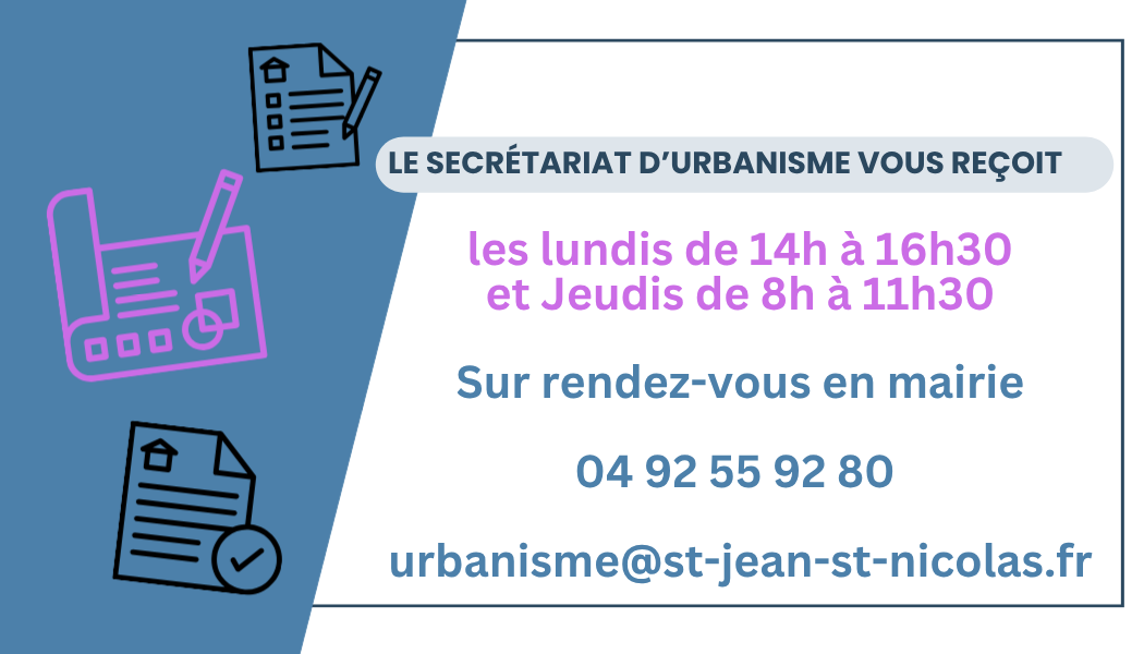 Actualités Mairie à la Une Cliquez sur un des posts pour accéder à tous les articles! MES DÉMARCHES URBANISME Des questions, besoin d'aide ou d’information dans la constitution de vos dossiers d’urbanisme, consulter des documents? INFORMEZ-VOUS EN MAIRIE PUIS DÉPOSEZ TOUTES VOS DEMANDES D'AUTORISATIONS D'URBANISME SUR LE GUICHET NUMÉRIQUE ICI MES DÉMARCHES TITRES D'IDENTITÉS Carte Nationale d'Identité / Passeport / Identitée Numérique PRISE DE RDV EN LIGNE Culture et Vie locale A la Une Réservez vos places ! La médiathèque Visitez la médiathèque Saison Culturelle Billetterie en ligne Patinoire Infos et Réservations Actuellement fermée En ce moment Festival Lire et Grandir en Famille 07/10/2025 La Clate en concert 01/10/2025 Programme d’octobre Médiathèque 26/09/2025 3 expositions d’Art Végétal 20/08/2025 Accompagnement numérique 30/06/2025 Office de tourisme Tel : 04 92 55 95 71 Gardes médicales et pharmacies Les professionnels de garde La météo locale Saint-Jean-Saint-Nicolas, FR 16:39, mardi 14 octobre 2025 17°C nuageux 64 % Wind Gust: 9 Km/h Clouds: 82% Sunrise: 07:48 Sunset: 18:52 La webcam du village