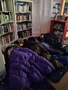 🌟Vingt aventuriers ont ensuite choisi de prolonger l’expérience en passant la nuit sur place. Pour l’occasion, la médiathèque s’est transformée en un lieu de couchage insolite : sacs de couchage, oreillers, doudous… et même les peluches de la médiathèque étaient de la fête ! Après tout, tout le monde sait qu’elles adorent lire une fois la nuit tombée.